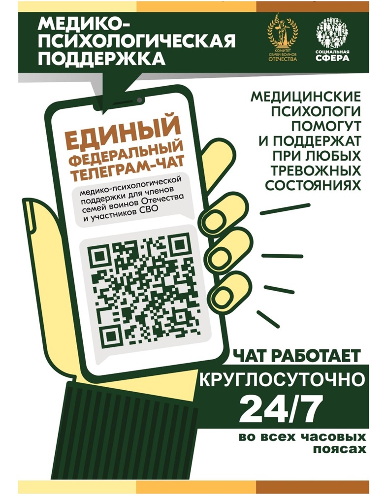 Продолжает работу единый федеральный чат Комитета семей воинов Отечества по оказанию медико-психологической поддержки семьям и участникам специальной военной операции (СВО) в круглосуточном режиме. «Психологическая помощь часто нужна здесь и сейчас. Нам важно помочь каждому, кто испытывает любые тревожные состояния. Помощь оказывается в круглосуточном режиме, независимо от региона проживания. Важно то, что к нам можно обратиться анонимно, мы не требуем раскрывать персональные данные и это стало ещё одним из дополнительных факторов востребованности именно такого формата психологической помощи, — отмечает руководитель КСВО Юлия Белехова. В чате работает команда опытных высококвалифицированных медицинских психологов, которые оказывают бесплатные медико-психологические консультации по различным тревожным состояниям. Общение в чате анонимное, без запроса персональных данных. Обратиться в чат может житель любого региона страны в формате 24/7, независимо от своего часового пояса. «Мы видим запрос на цифровой формат общения, когда не надо идти в поликлинику и тебя не увидят соседи. За год работы чата специалистами отработано более 4 000 индивидуальных обращений. Сегодня мы в динамике сопровождаем даже самые тяжёлые случаи. В команде 75 клинических психологов из 10 регионов страны. Мы не используем искусственный интеллект, мы про живое общение со специалистом», — комментирует координатор Чата, член Общественной палаты Российской Федерации, руководитель федерального проекта «ЗдравКонтроль» Евгений Мартынов. В чат уже подключилось более 16 000 человек из разных регионов страны.